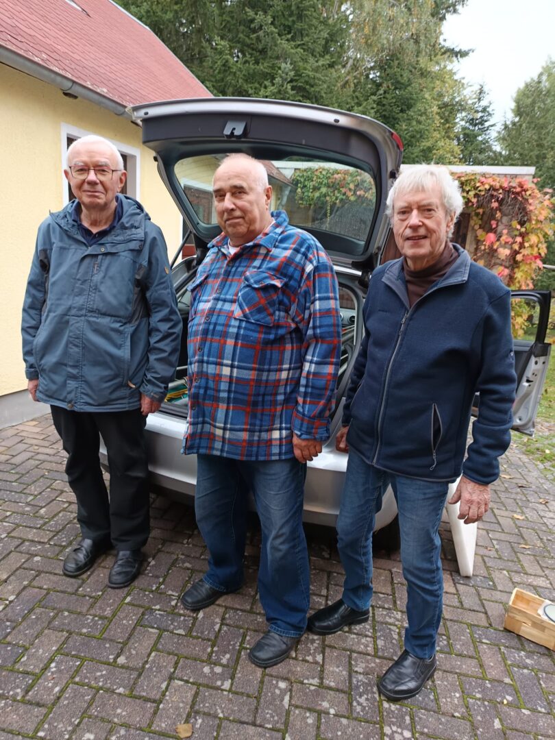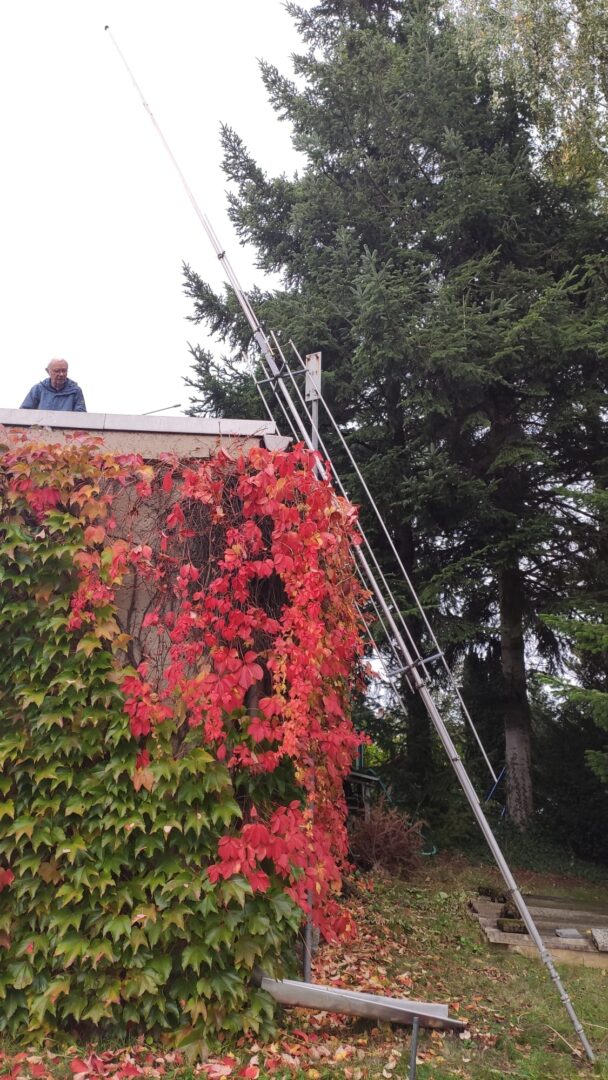 Nachdem Jürgen, DL3JLM, im Januar 2025 verstorben war, hatten wir seiner Witwe Gunda versprochen, beim Rückbau der Amateurfunkanlage behilflich zu sein. Während sich für den TRX bald schon ein Abnehmer gefunden hatte, blieb noch die Demontage der Vertikalantenne an der Garage. Dabei handelt es sich um eine GAP Titan für acht HF-Bänder. Diese Antenne wurde vor ziemlich genau 20 Jahren montiert und versah ihren Dienst bis zuletzt auf 80 m, wo Jürgen in der FX-Runde Kontakt zu seinen früheren Seefunkkollegen hielt. Hätte man die Antenne verschrotten wollen, wäre die Demontage einfacher geworden. Aber ein Rostocker Funkfreund von Hardy war an der Antenne als Ersatzteilspender interessiert. Nach Abstimmung mit Gunda und dem mittelfristigen Wetterbericht legten wir den 15. Oktober für die Demontage fest, ein ruhiger Herbsttag.