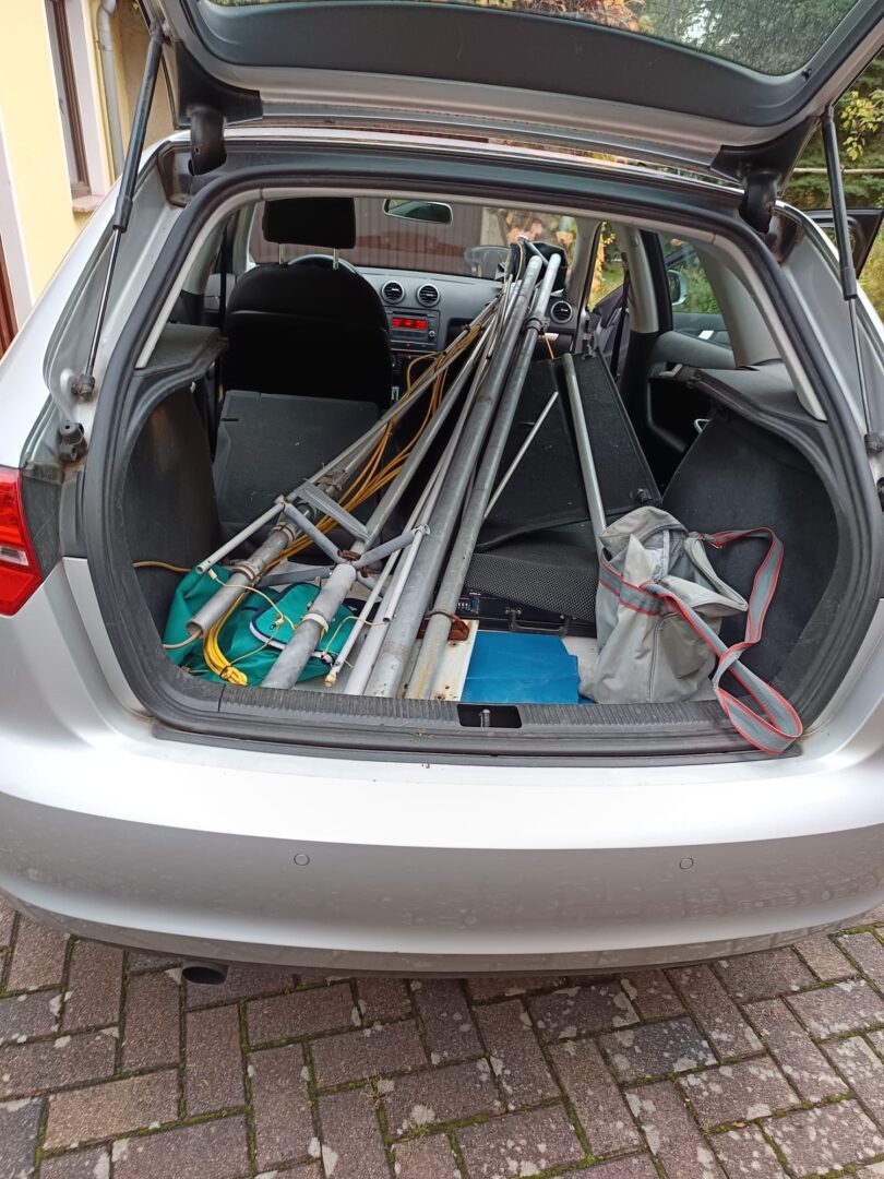 Schließlich gelang es Hardy, die zerlegte Antenne in seinem PKW zu verstauen.