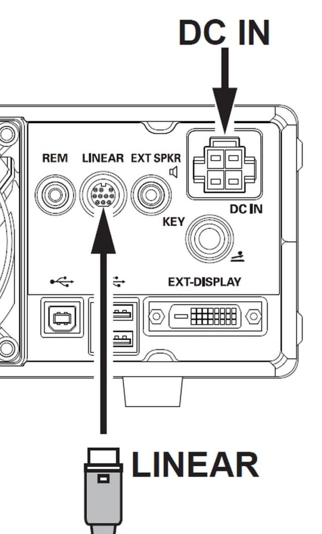 Mit dem Suchbegriff „FT-DX10 PA Kabel“ findet man bei einem bekannten Versender aus China /6/ ein preiswertes passendes Kabel mit offenen Enden. Dessen Stecker passte in die „Linear Buchse“ des FT-DX10. Die Anschlüsse für den Open-Collector-Ausgang befinden sich in der untersten Reihe. GND hatte in dem Kabel eine rote Ader.